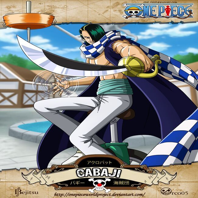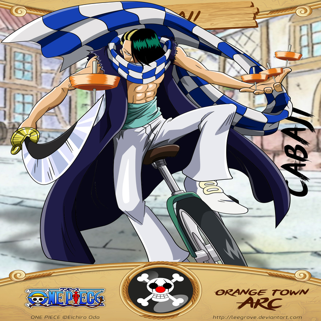 This is a picture of Cabaji, a fictional character who is the chief of staff with the nickname Cabaji "Acrobatics" in the manga One Piece.